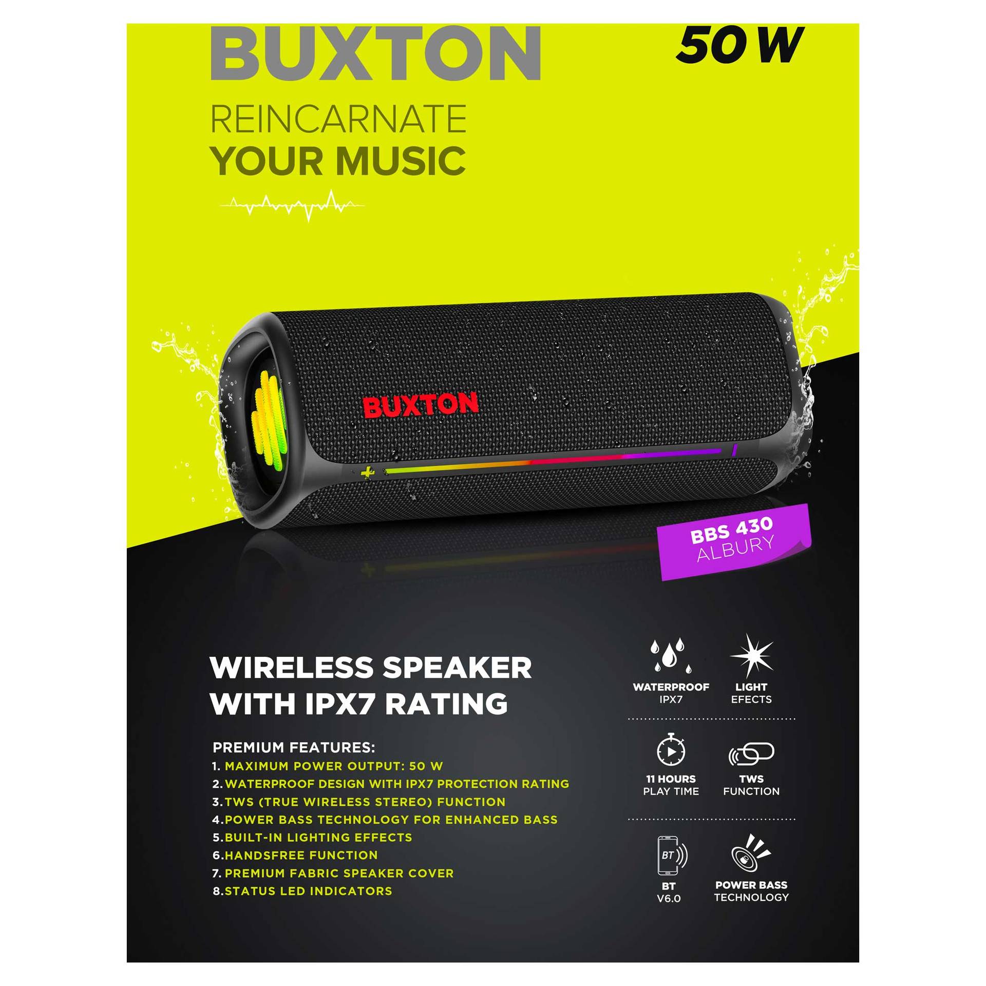RMS výkon: 35 W (2× 15 W RMS basový reproduktor + 1× 5 W RMS výškový reproduktor)